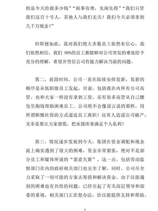 昔日首富刷屏!欠薪5个月 遭400员工组团讨薪!李河君3000字长信致歉...[详情]